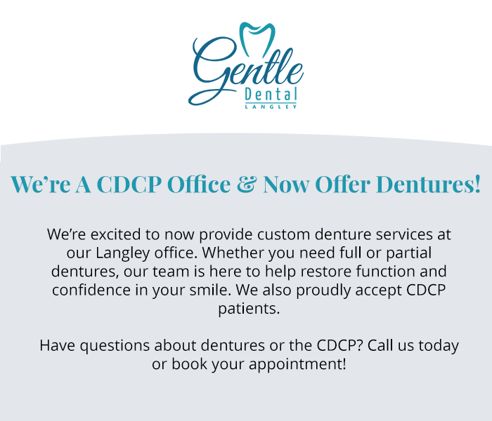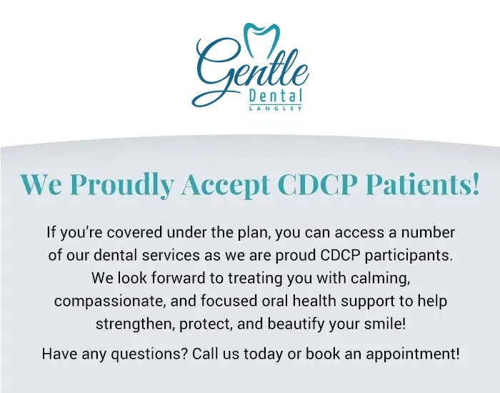 Regular dental visits and great home care habits will keep your smile looking and feeling its very best. We proudly accept CDCP patients at our practice and would love to treat your oral health. Let us become your dentist office in Langley and we’ll help you smile with confidence!